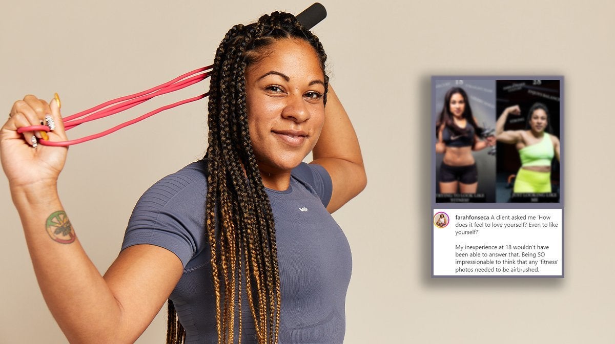 After years of airbrushing photos, posing to create a “thigh gap”, and straightening her hair to try and fit into the fitness influencer mould, Farah switched her mindset. Now she feels strong, confident, and authentically herself.