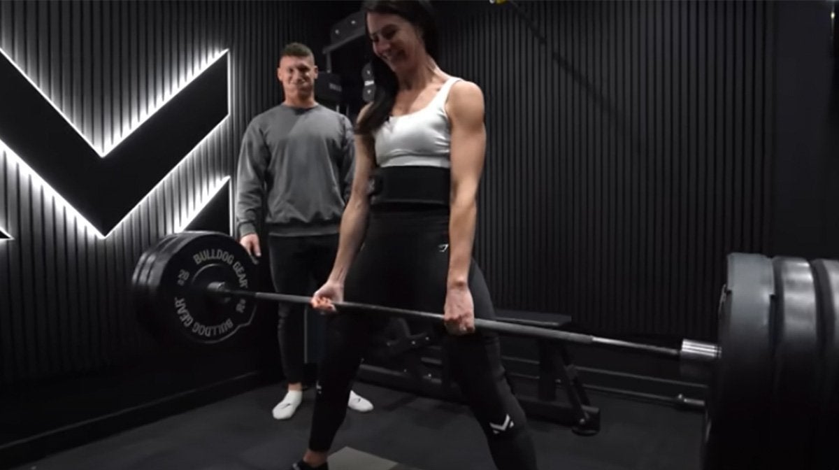 First up, the “before” session. Sarah completed her one-rep max — the heaviest weight she could lift for one complete rep — for squat, bench press, and deadlift.