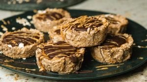 - Transfer the base mixture to a greased muffin tray, dividing between 8. Then use a teaspoon to form the mixture into a cup shape and freeze for 30 minutes.