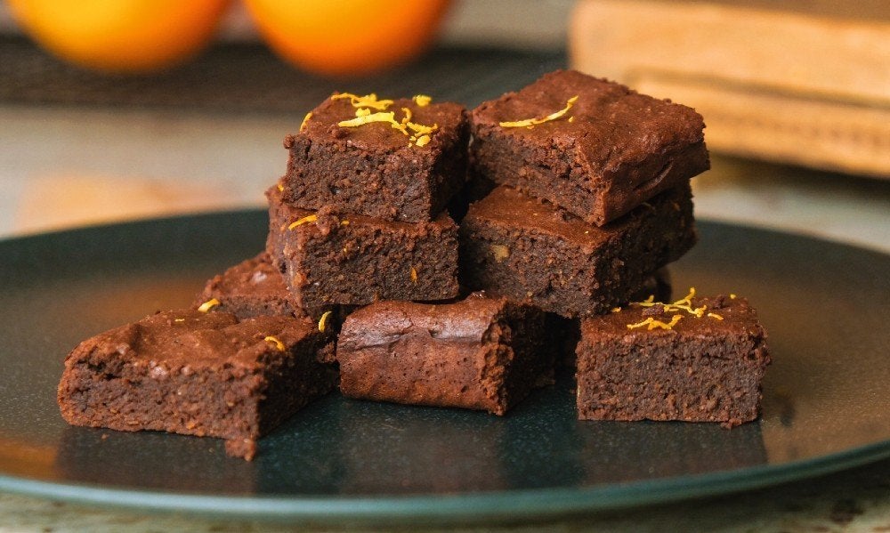 Niall Kirkland’s chocolate orange brownies are simple to get stuck into and the results are beyond worth it. He uses plenty of orange-flavoured dark chocolate and cacao powder to give them a rich, deep flavour, along with maple syrup to naturally sweeten and some orange zest for a fresh citrus punch. Heaven.