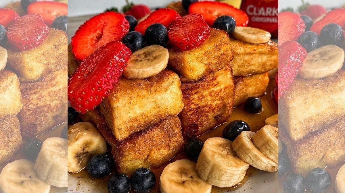 7) Stack your cinnamon French toast sticks on a plate, then top with plenty of berries and Sugar-Free Syrup. Enjoy!