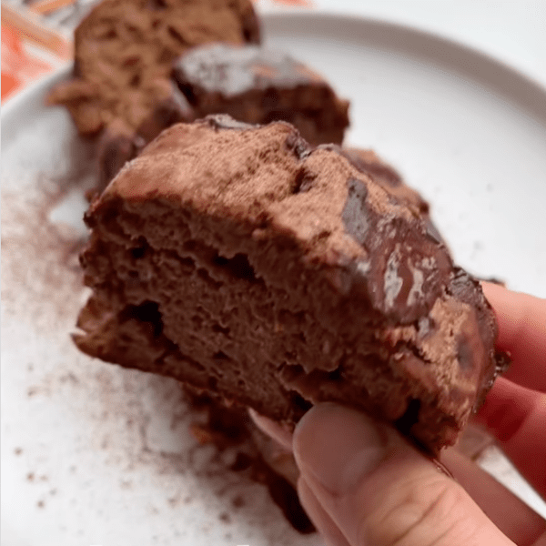 1. Mix the flour, protein powder, cocoa powder, sweetener, and baking powder together.