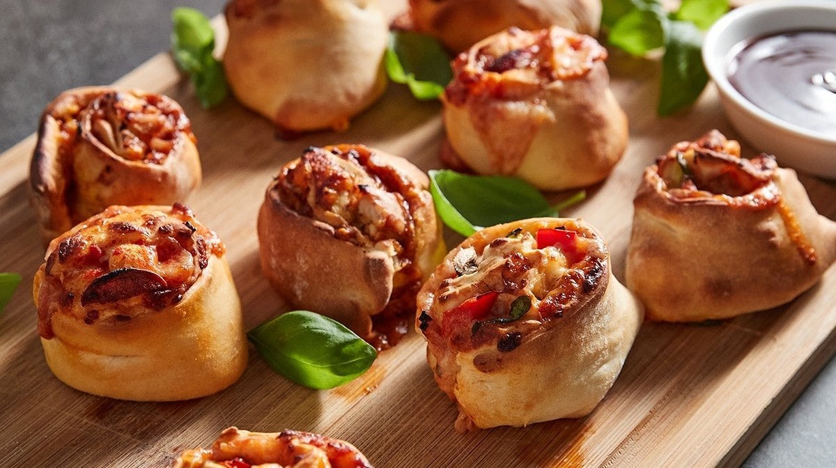 Wrap up your favourite toppings into these deliciously soft and doughy pizza rolls.