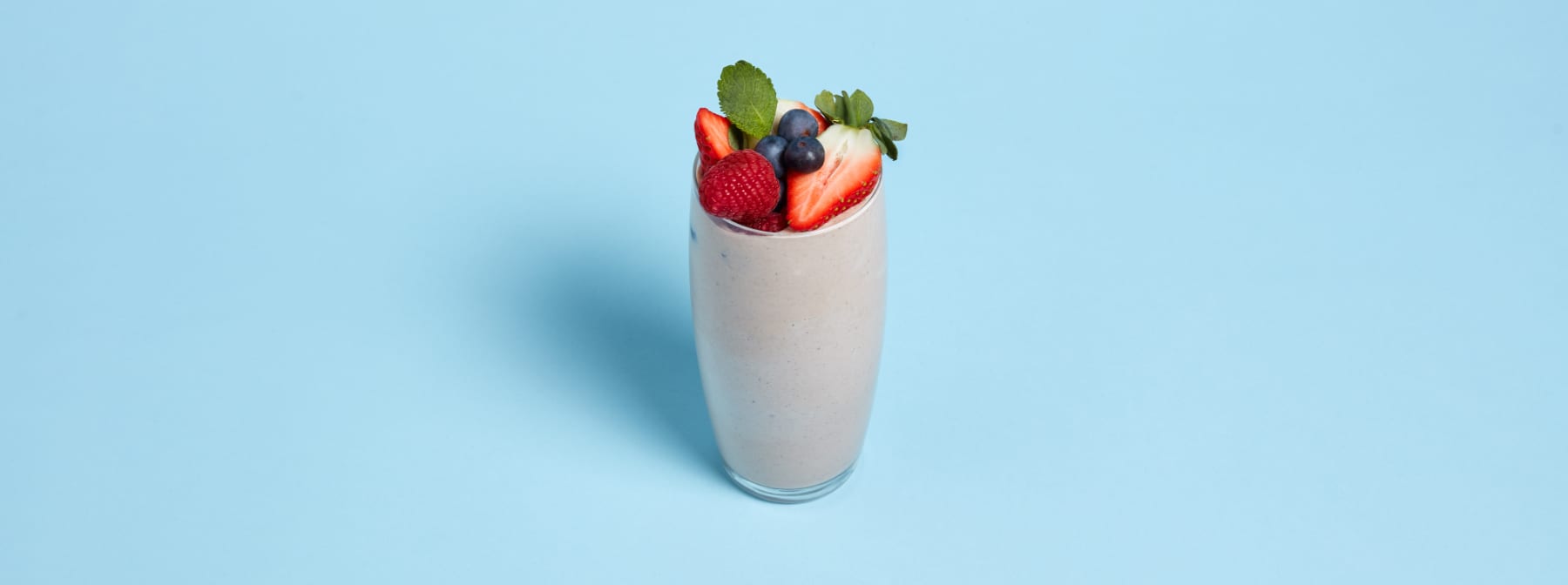 2. Pour into a glass and top with your favourite toppings — we love mixed berries — then enjoy!