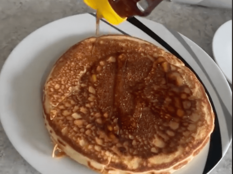 When your pancake is done cooking, place it on a plate and drizzle on your sugar-free syrup. Add whipped cream too if you like. Enjoy!