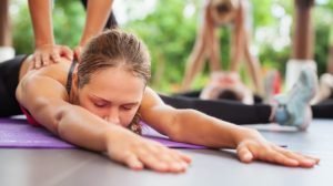 - Have your partner stand close behind you and pull your elbows back by locking their elbows over yours.